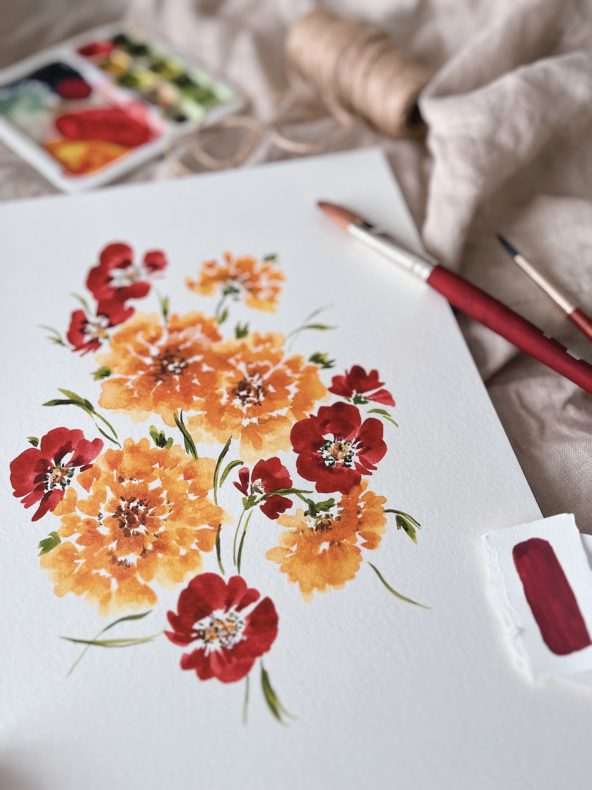 I started exploring the watercolour medium while I was in high school. I loved being able to duplicate the flowing of water and paint like I saw other artists create. The light wash and translucency of colours on paper has always been attractive to me. My first watercolour piece was a floral pattern of pale magnolias on a large canvas. I thought it was the most spectacular thing I had ever created but if I’m being honest, I would probably be embarrassed to let anyone see it today.